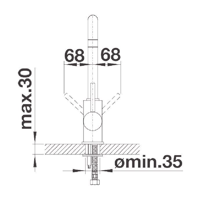 -csaptelep beépítéséhez 35 mm átmérőjű furat szükséges