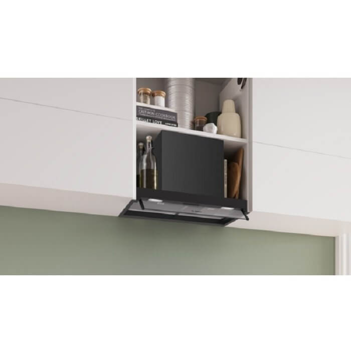 Bosch DBB65CC60 álkürtőbe építhető páraelszívó, fekete, 60 cm, 3 fokozat, fém zsírszűrő, nyomógombos vezérlés, LED világítás (2 év jótállás fogyasztónak)