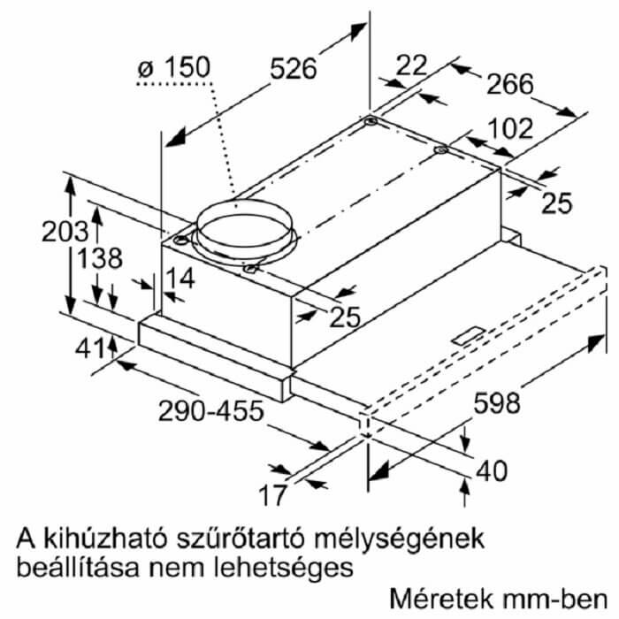 Bosch DFL064W54 beépíthető teleszkópos páraelszívó jellemzői