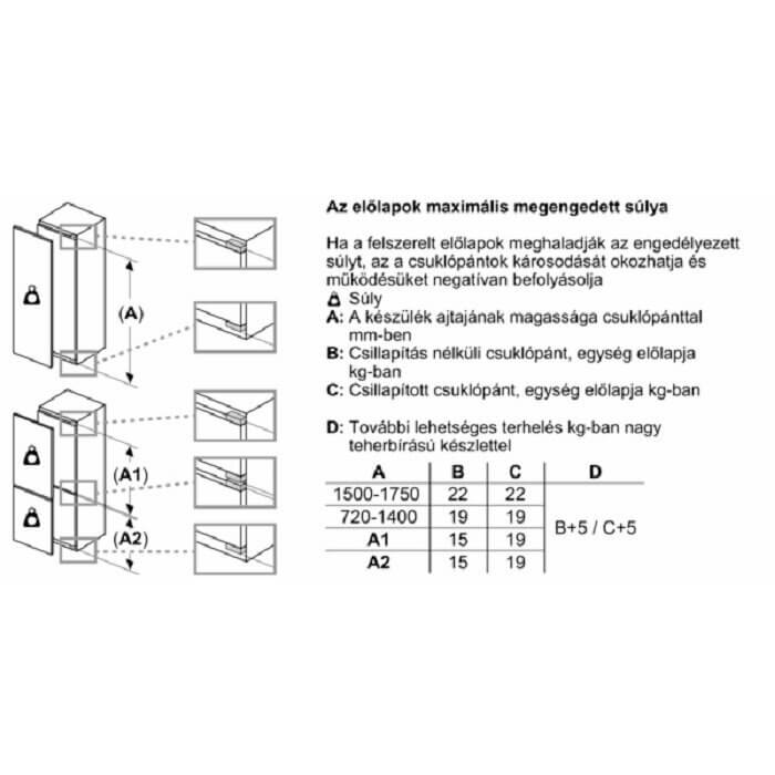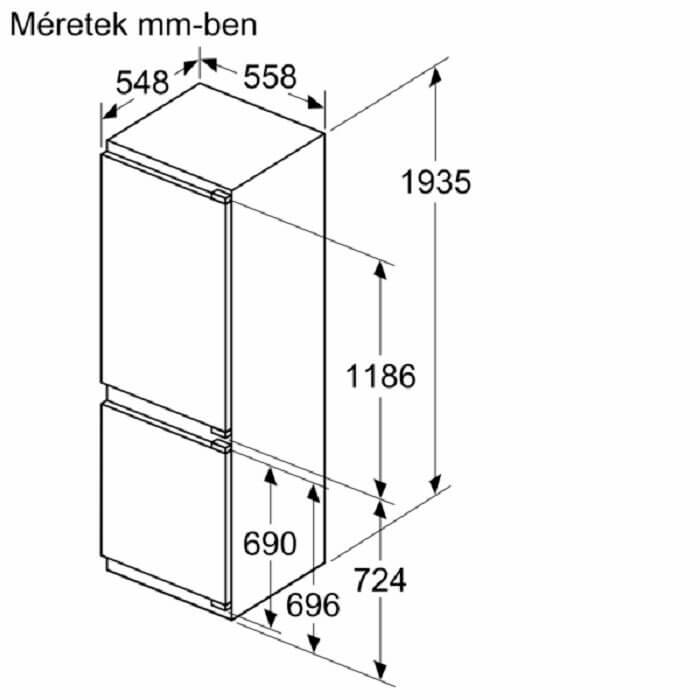Bosch KIN96ADC0 beépíthető kombinált hűtőszekrény jellemzői
