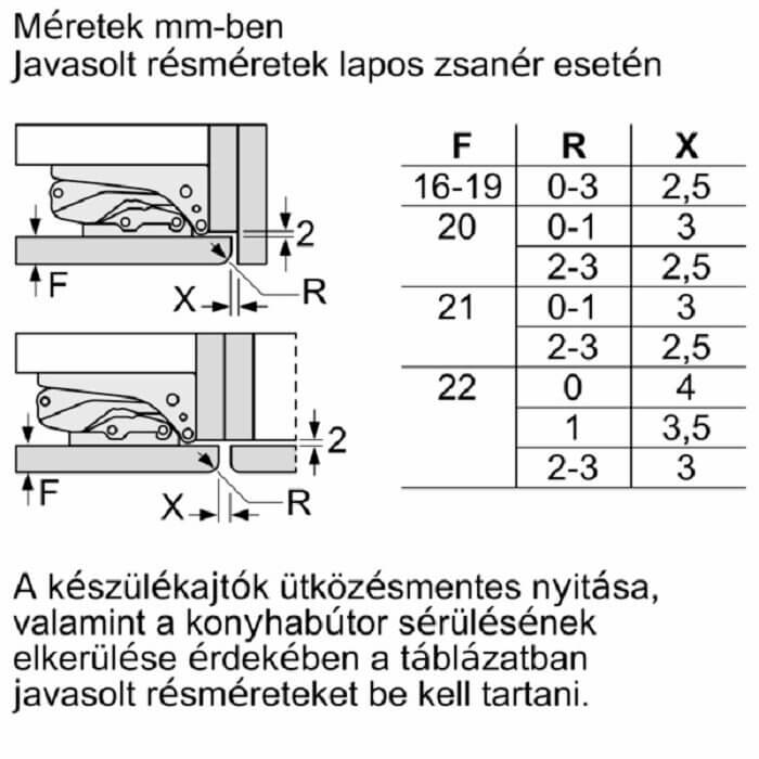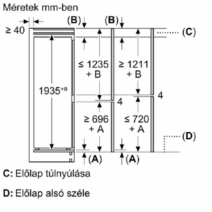 Beépítési méretek (magasság x szélesség x mélység)