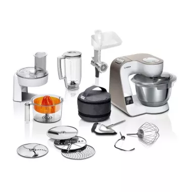 Bosch MUM5XW40 konyhai robotgép, fehér, 3D-s keverés, dagasztókar, keverőszár, habverő, beépített mérleg, húsdaráló, 1000 W (2 év jótállás fogyasztónak)