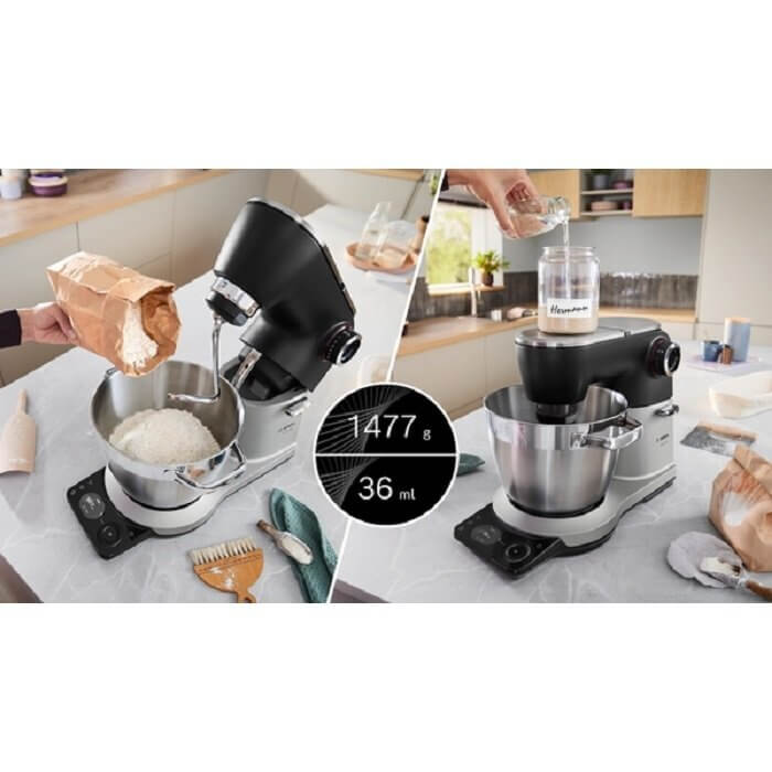 Bosch MUMS8ZS00 konyhai robotgép, fekete, 3D-s keverés, beépített mérleg, dagasztókar, keverőszár, habverő, 1800 W (3 év jótállás fogyasztónak)