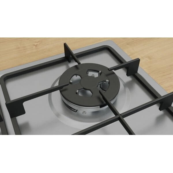 • Bosch PGH6B5K60 beépíthető gázfőzőlap, 60 cm, wok, nemesacél, elölgombos vezérlés, szikragyújtás, öntöttvas bevonatú edénytartó rács