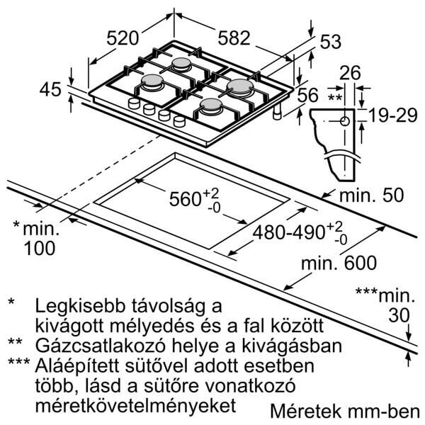 Bosch PGP6B5K60 beépíthető gázfőzőlap jellemzői