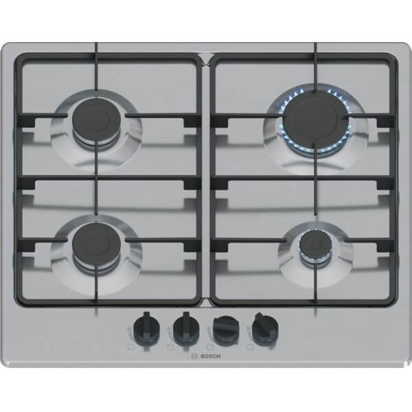 Bosch PGP6B5K60 beépíthető gázfőzőlap, 60cm, nemesacél, elölgombos vezérlés, szikragyújtás