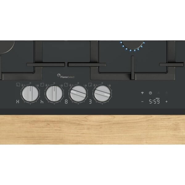 Bosch PRP6A6H40 beépíthető gázfőzőlap, 60cm, üveglapos kivitel, WIFI, elölgombos vezérlés, FlameSelect , szikragyújtás, öntöttvas rács (2 év jótállás fogyasztónak)