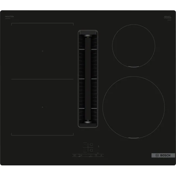 Bosch PVS611B16E beépíthető indukciós főzőlap beépített páraelszívóval, 60 cm, érintővezérlés, Booster funkció, időzítő, 622 m3/h elszívási teljesítmény, 61-69 dB/A (3 év jótállás fogyasztónak)
