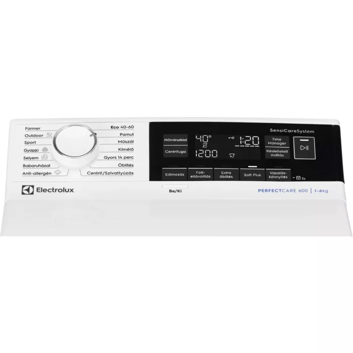 Electrolux EW6TN3062H felültöltős mosógép, 6kg, 1000 f/p., TimeManager, SensiCare, SoftPlus, antiallergén program, LCD kijelző, Woolmark Blue (2 év jótállás fogyasztónak)