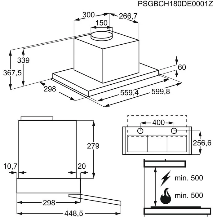 -Kivezetett üzemmód: a légtechnikai rendszer teljes hossza rendelkezzen azzal az áteresztő képességgel (megfelelő keresztmetszettel) amelyet a páraelszívó gyári csatlakozó csonka meghatároz. A nyomvonal kialakításánál a lehető legrövidebb, szűkítés-mentes útvonal kialakítása javasolt.
