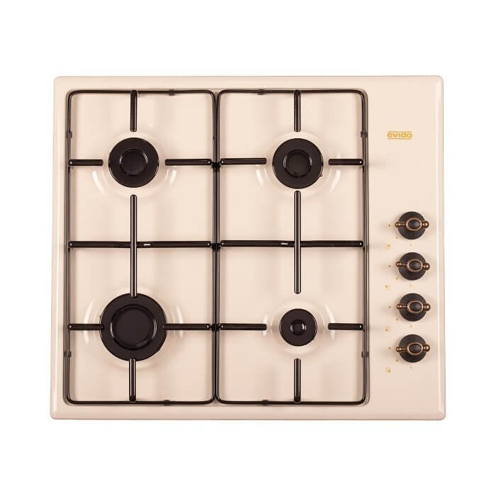 Evido RUSTIC-H 60C beépíthető gázfőzőlap, 60 cm, 4 gázégő, oldalgombos vezérlés, szikragyújtás, zománcozott edénytartók