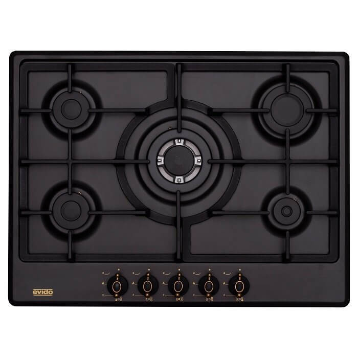 Evido RUSTIC-H 70A beépíthető gázfőzőlap, 70 cm, 5 gázégő, elölgombos vezérlés, szikragyújtás