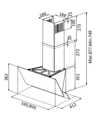 895mm x 749-877mm x 412mm