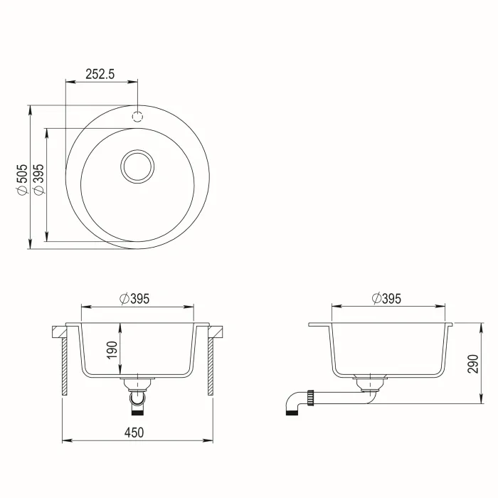 -Méret: 505 (medence átmérő) / 190 mm (medencemélység)