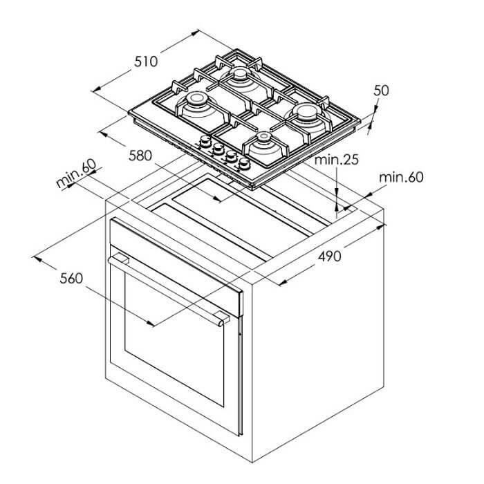 Evido Valeo 60FX beépíthető gázfőzőlap jellemzői
