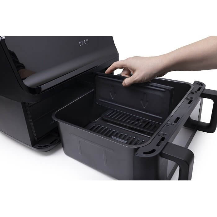 -kivehető elválasztó, aminek segítségével két részre osztható az air fryer