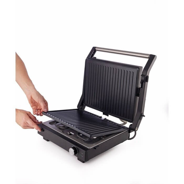 -180° nyitott grillezés: kompakt grill lehetővé teszi, hogy zárt fedéllel vagy teljesen nyitott fedéllel grillezzen, ami megnöveli a grillezési területet