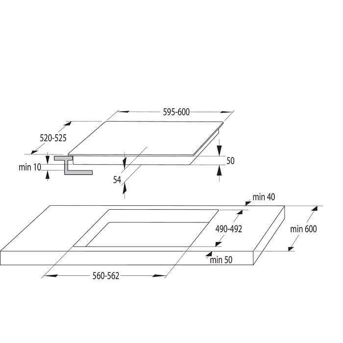 595mm x 54mm x 520mm