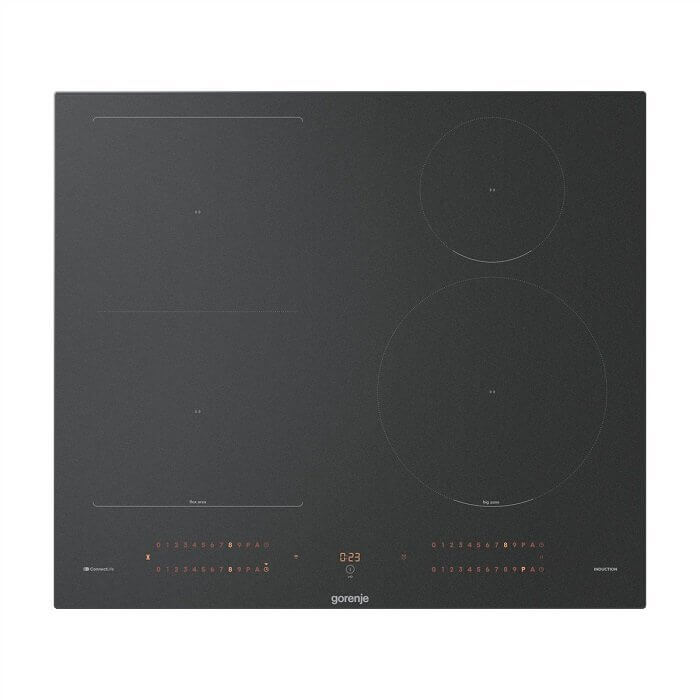 • Gorenje GI6433SRWF beépíthető indukciós főzőlap, matt fekete, 60cm, slider vezérlés, wifi, bridgearea, extra nagy zóna 23 cm, automata prog., timer