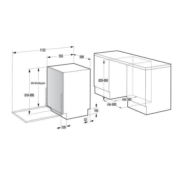min. 600mm x 820-900mm x min. 560mm