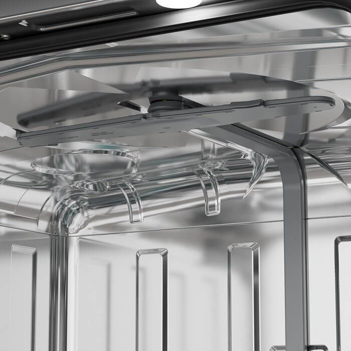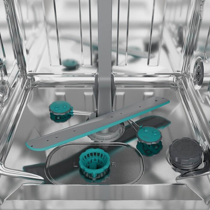 -intezív JetZone: két nagy teljesítményű és nagy hatékonyságú szókar a hátsó részen találhatók, a magasnyomású víz alkalmazásával közvetlenül legmakacsabb foltokat célozzák meg, tökéletesek az edények, lábasok, serpenyők és tepsik tisztítására
