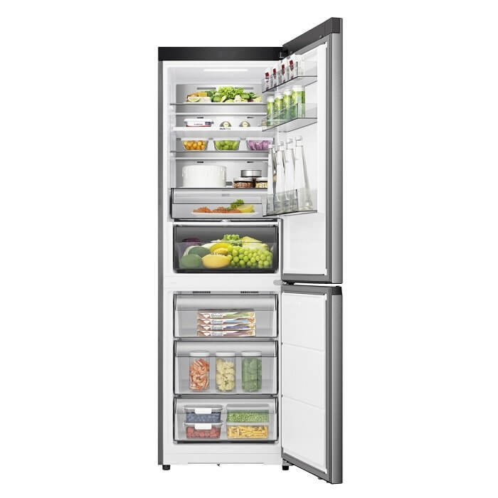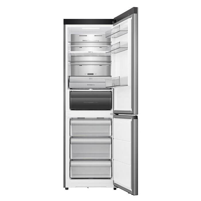 Hisense RB3K330SAIE alulfagyasztós kombinált hűtőszekrény, inoxlook, TotalNoFrost, 185,6cm, 215/115 l, WIFI, Multi Air Flow, MetalCooling, gyorsfagyasztás (3 év jótállás fogyasztónak)