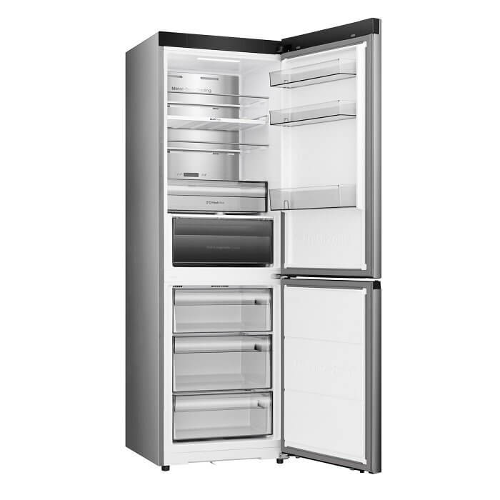 Hisense RB3K330SAIE alulfagyasztós kombinált hűtőszekrény, inoxlook, TotalNoFrost, 185,6cm, 215/115 l, WIFI , Multi Air Flow, MetalCooling, gyorsfagyasztás (3 év jótállás fogyasztónak)