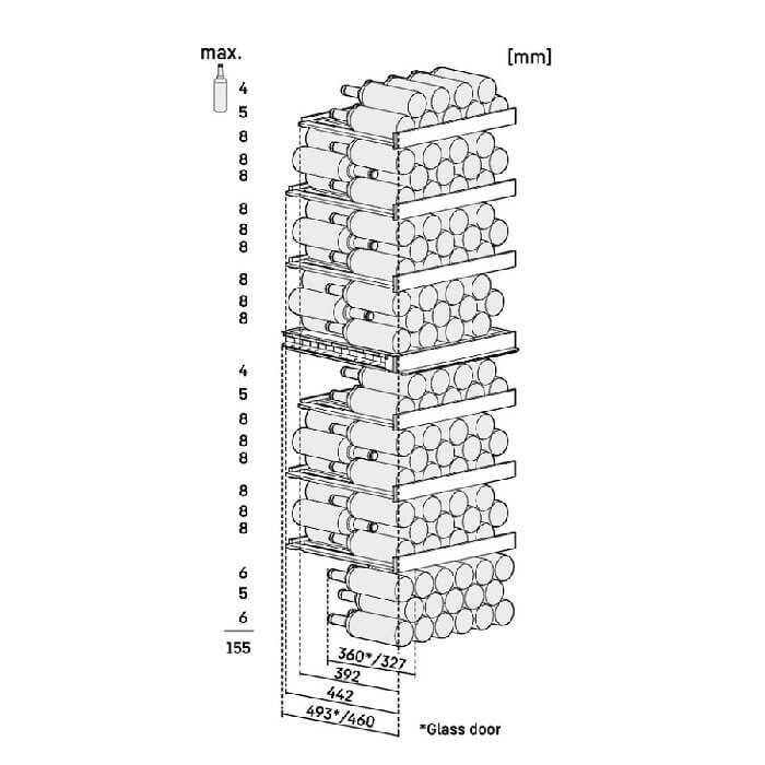 -44 palack tárolási kapacitás /0.75l-es Bordeaux-i/
